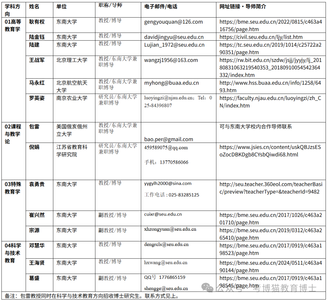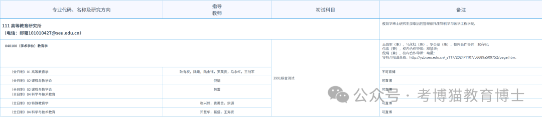 四、东南大学教育博士招生目录: